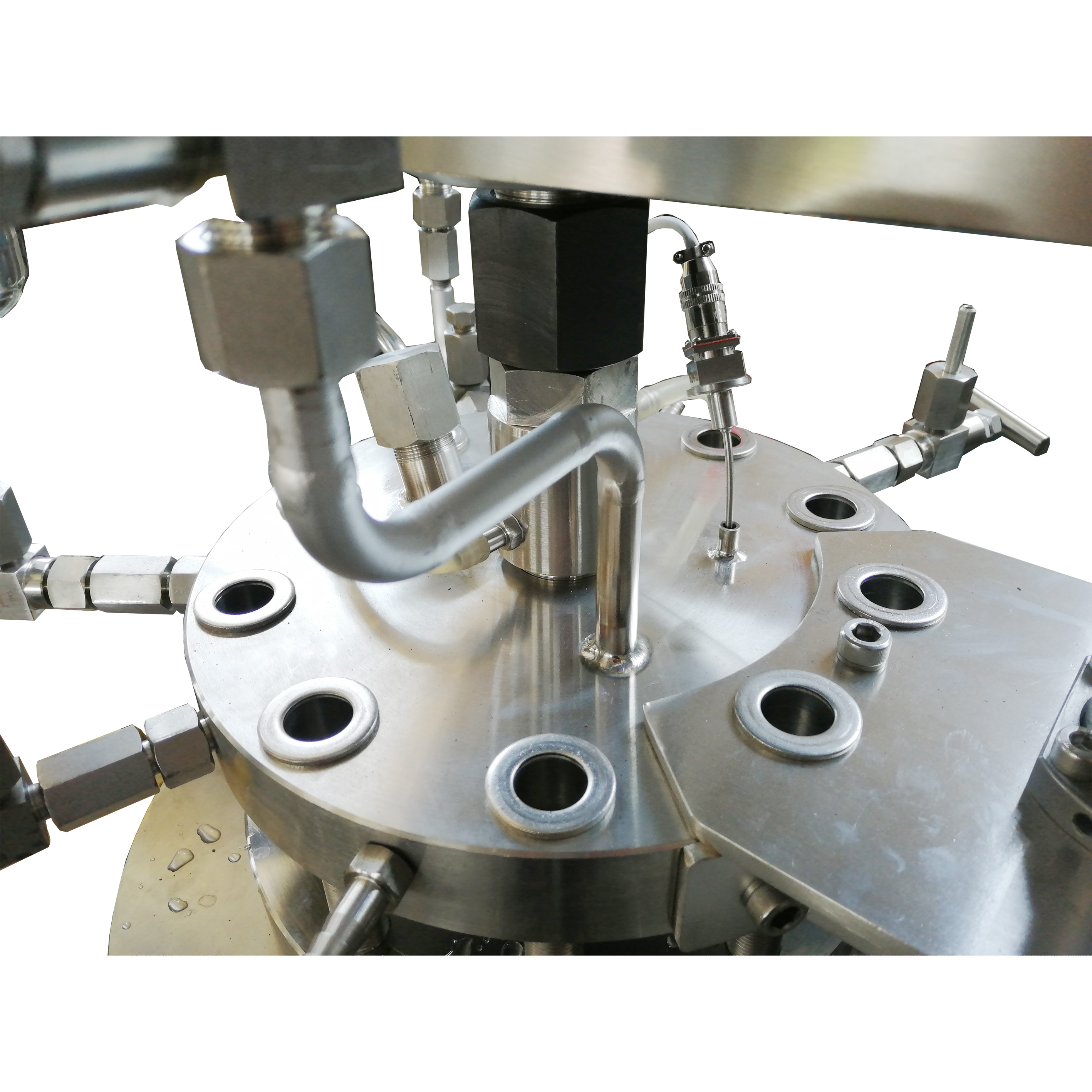 反應(yīng)釜配豎直回流冷凝器(蛇形管冷凝器),等壓加料罐,適合多種實(shí)驗(yàn)室用途。